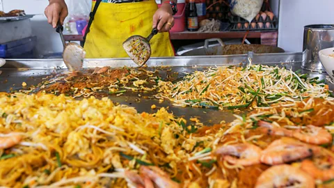 보통은 이동 중에 먹지 않지만, 팟타이는 방콕 전역의 작은 노점에서 판매하는 인기 있는 길거리 음식입니다. 그리고 여러 세대에 걸쳐 도시의 야오와랏 지역 근처에 있는 파드타이 라차웡 노점은 최고의 전통 팟타이를 제공하는 것으로 알려져 왔습니다. 방콕 "야오와랏에서는 보통 아주 맛있는 팟타이를 맛볼 수 있어요. 그 이유는 주로 태국계 중국인 가족이 많이 사는 곳이기 때문이에요."